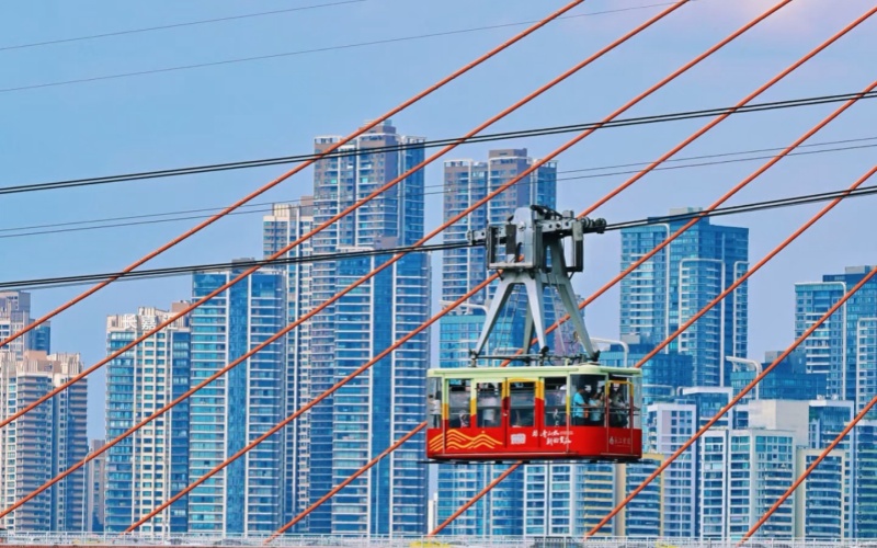 Conocido como el “autobús aéreo” de Chongqing, este teleférico cruza el río Yangtsé en solo 4 minutos, ofreciendo una perspectiva tridimensional de la ciudad, suspendido sobre el agua y el tráfico urbano.