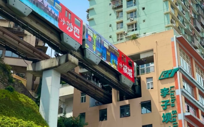 La estación de Liziba es famosa porque el tren atraviesa literalmente un edificio residencial de 19 pisos. Un imprescindible para fotos y vídeos, muy popular en TikTok, YouTube e Instagram.